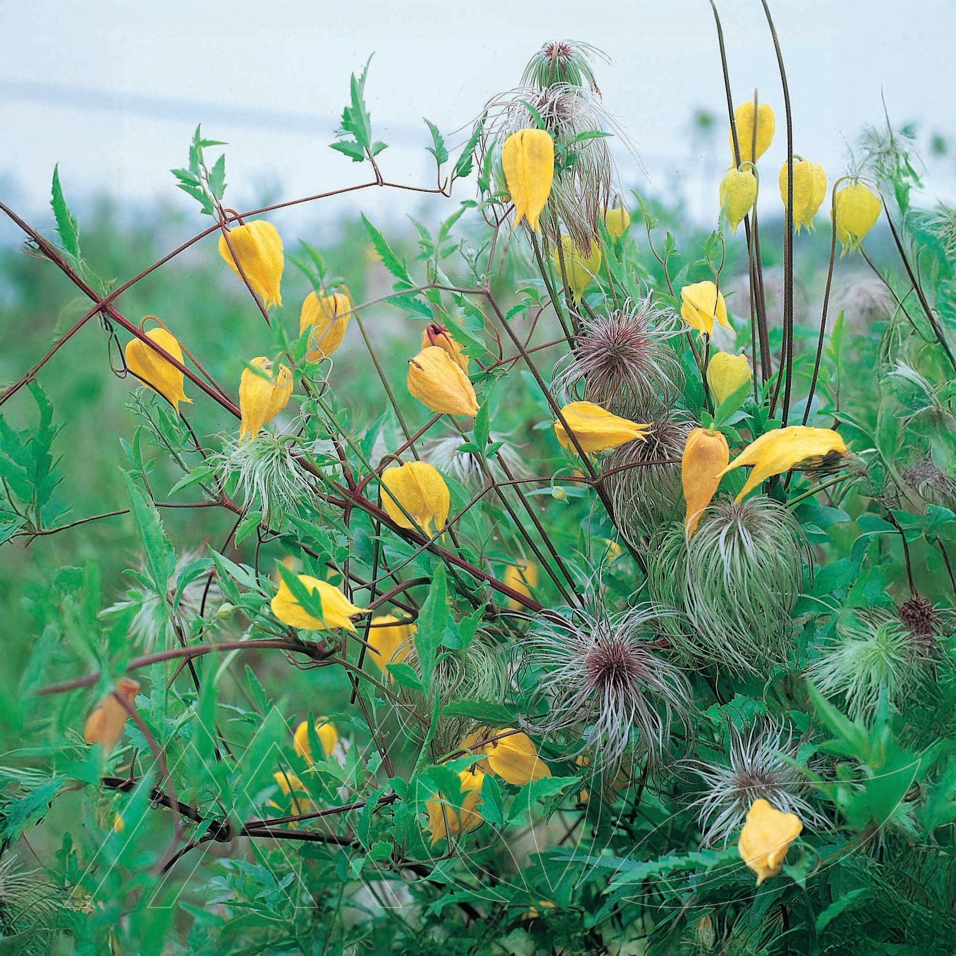 Prune hard each spring. Clematis need a support structure to climb. They do not self-cling and climb by curling. They prefer full sun but like having their roots in the shade, in moist soil.