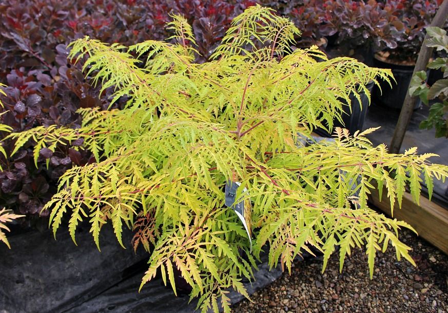 This is a beautiful golden-leafed Sumac. In the fall the foliage turns a dramatic orange to scarlet-red. It is very adaptable to urban conditions.
